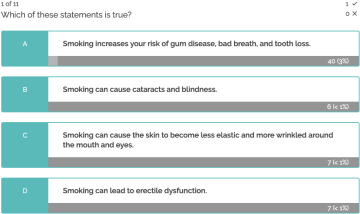 Explore your addiction level, see how smoking affects your body and how it heals, learn what smoking is costing you and test your knowledge.